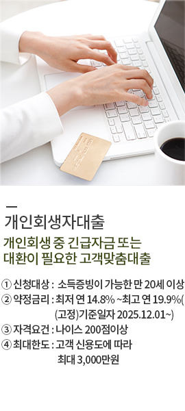 개인회생 중 긴급자금 또는 대환이 필요한 고객을 위한 맞춤대출서비스