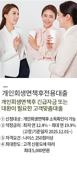 개인회생면책후 긴급자금 또는 대환이 필요한 고객을 위한 맞춤대출서비스